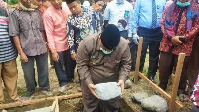 Tandikat, sumbarsatu.com—Bupati Padang Pariaman Suhatri Bur meletakkan batu pertama pembangunan Pondok Pesantren Madinatul Ilmi Nurul Ikhlas di Kampung Guci, Korong Lubuak Aro, Nagari Tandikat, Kecamatan Patamuan, Senin (22/3/2021).