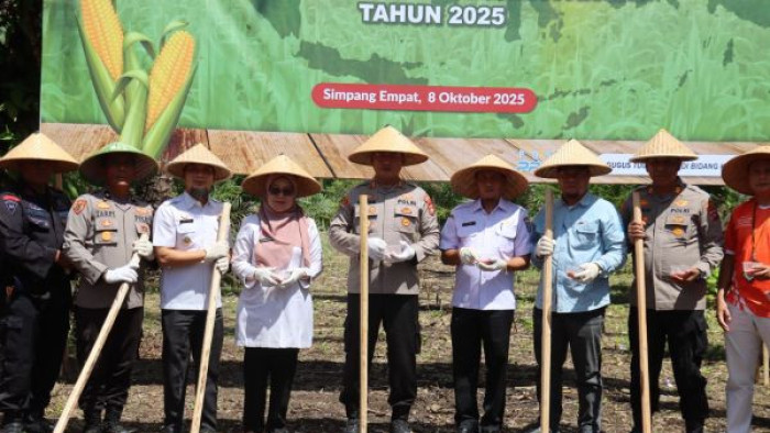Simpang Empat, sumbarsatu.com-- Dalam rangka mendukung program Ketahanan Pangan serta pencapaian Swasembada Pangan tahun 2025, Polres Pasaman Barat, Polda Sumbar menggelar penanaman jagung Kuartal IV dan peresmian gudang Ketahanan Pangan Polri, Rabu (8/10/2025).