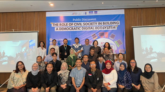 Jakarta, sumbarsatu.ciom — Asosiasi Media Siber Indonesia (AMSI) pada Rabu, 9 Oktober 2025, menyelenggarakan diskusi publik bertajuk “The Role of Civil Society in Building a Democratic Digital Ecosystem” bekerja sama dengan Koalisi Damai, dengan dukungan UNESCO dan Uni Eropa melalui proyek Social Media 4 Peace. Acara berlangsung di Hotel Ascott Sudirman, Jakarta Selatan.