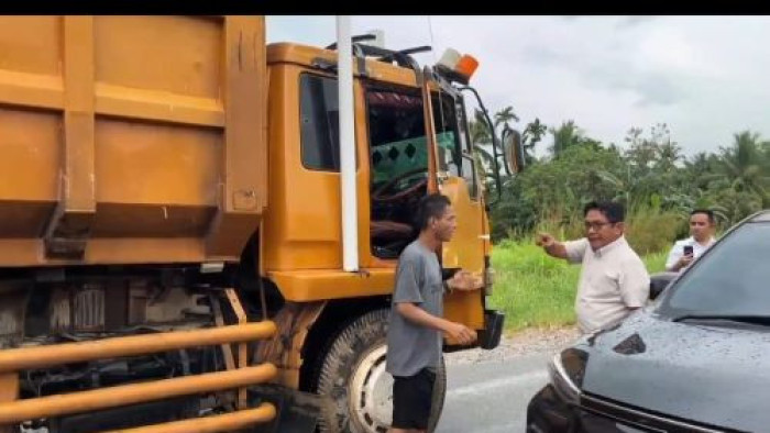 Dum-truk penambang galian C diatas 20-40 ton, yang melintasi jembatan Kampuang Apa, di Kenegarian Buaiyan dan Kenegarian Lubuk Alung, Padang Pariaman Sabtu (6/12/2025).