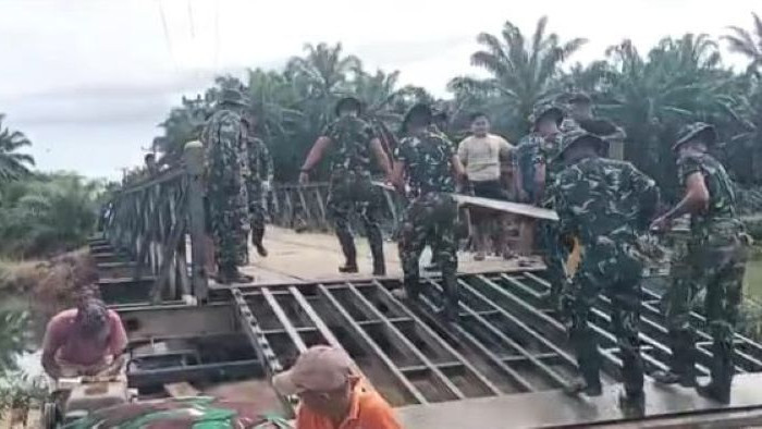 Pengerjaan jembatan dilakukan oleh prajurit TNI dari Denzipur 2/Prasada Sakti Payakumbuh, Batalion TP.896/SP Jambi, serta Koramil 07 Air Bangis.