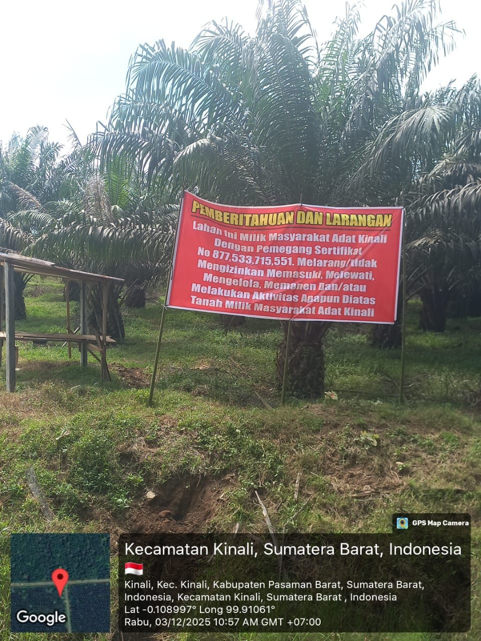 Pasbar, sumbarsatu. com-- PT. Perkebunan sawit Laras Internusa (PT LIN) Kinali Kabupaten Pasaman Barat, Sumatera Barat, caplok tanah masyarakat adat Kinali.