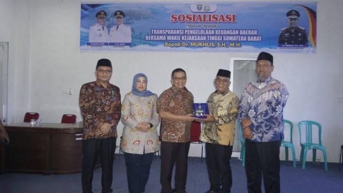 Simpang Empat, sumbarsatu.com -- Wakil Kepala Kejaksaan Tinggi (Wakajati) Sumatera Barat, Dr. Mukhlis, S.H., M.H., memberikan sosialisasi mengenai transparansi pengelolaan keuangan daerah kepada jajaran Pemerintah Kabupaten Pasaman Barat.
