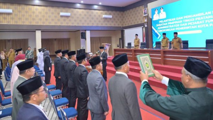 “Seharusnya yang melantik adalah Wali Kota. Namun karena Wali Kota dan Wakil Wali Kota sedang berada di luar daerah mengikuti rapat koordinasi nasional bersama Presiden Prabowo, maka pelantikan dilaksanakan oleh Sekda atas izin Wali Kota,” katanya.