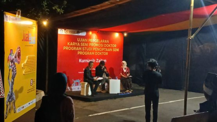 Ujian pergelaran karya seni disertasi itu dipimpin langsung oleh Ketua Dewan Penguji, Dr. Bondet Wrahatnala, S.Sos., M.Sn., yang juga Rektor ISI Surakarta. Dalam suasana khidmat yang dipenuhi seniman, akademisi, dan penonton umum, sidang promosi berlangsung sekaligus sebagai pertunjukan terbuka yang menampilkan karya penciptaan seni berbasis riset.
